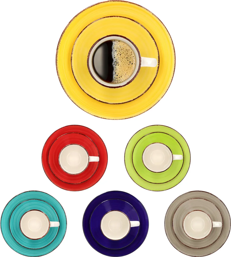 18tlg Kaffeeservice Malaga Kaffee Tee-Gedeck 6Pers Kaffeetassen Dessertteller Abstrakt Handbemalt