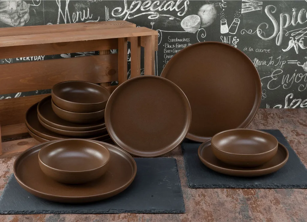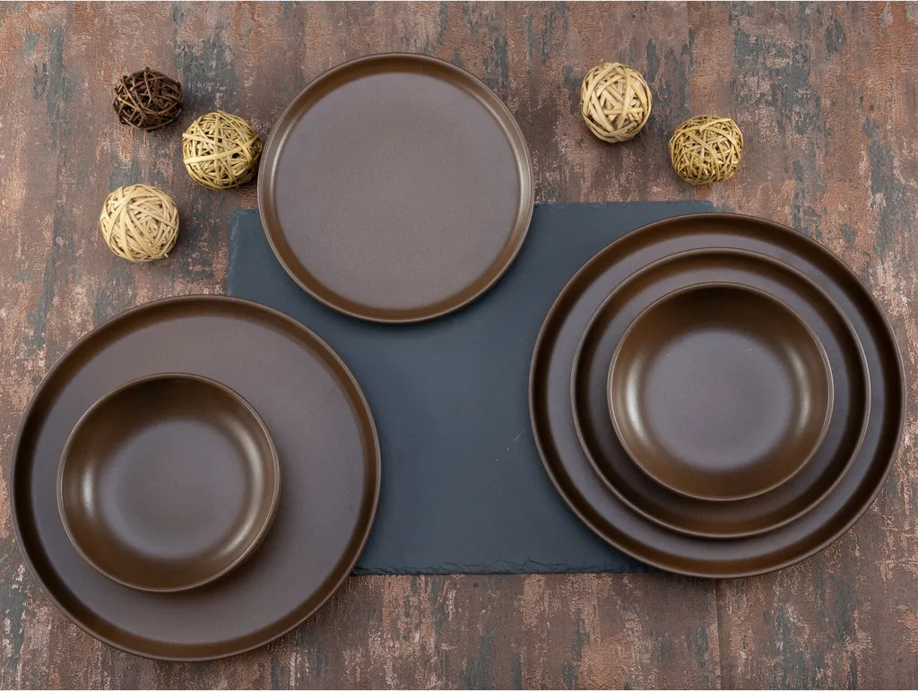 CreaTable, 23659, Serie Uno Braun, Geschirrset, Teller Set 12 Teilig, Farbe:Braun