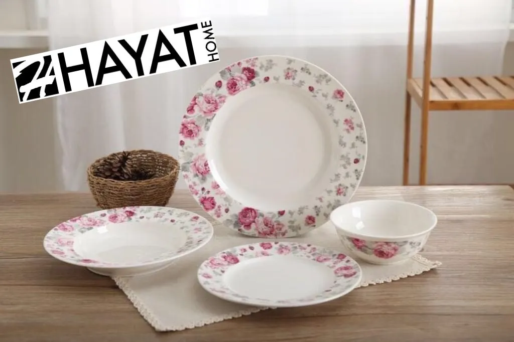 Hayat Tafelservice 24 Tlg Blumenmuster Ess-Service Tafelservice Dinner Tellerset „Rosarium“