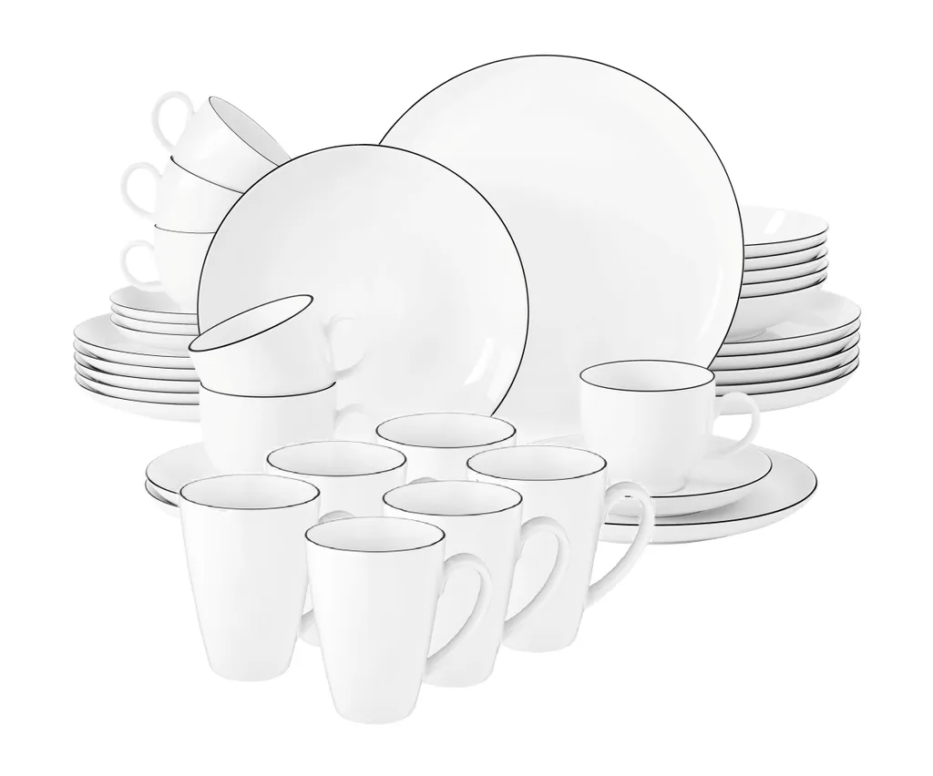 Seltmann Weiden Black Line 36 Tlg. Tafelservice Weiß Schwarz Modern Porzellan