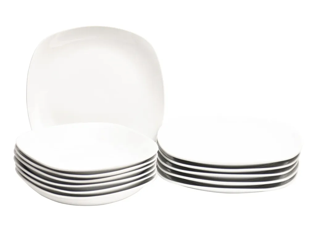 Tafelservice Atrium 12tlg. Für 6 Personen Porzellan Weiß Geschirr Essteller Suppenteller Teller