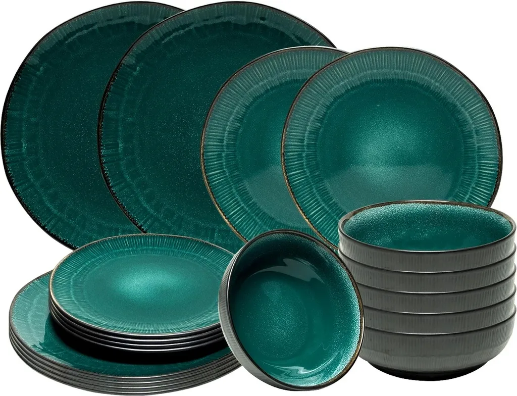 Tafelservice – Blaugrün – Keramik – Für 6 Personen – Mit Prägung