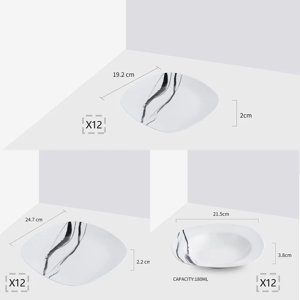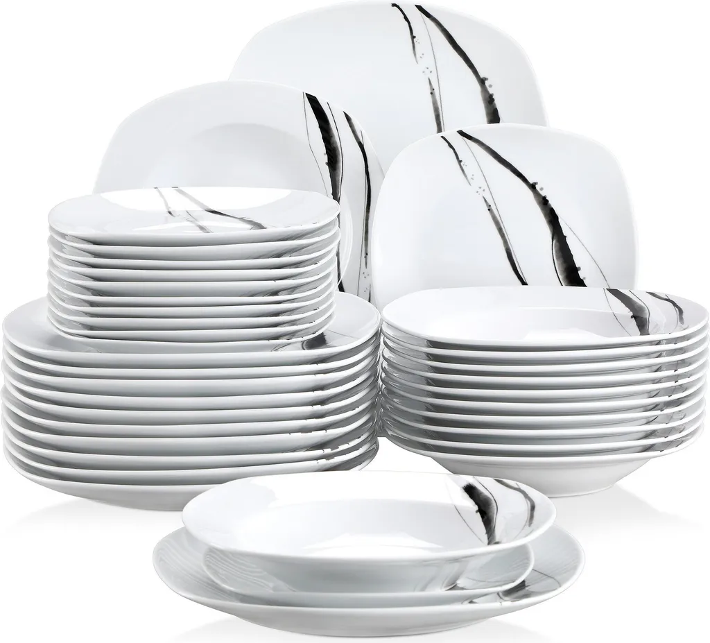 VEWEET, Tafelservice ‚Teresa‘ Aus Porzellan, 36-teilig Geschirrset, Kombiservice Mit Dessertteller, Speiseteller Und Suppenteller